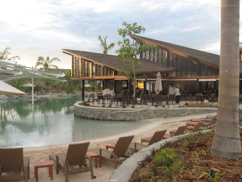- This project required a particularly sensitive and disciplined role for edgearchitecture in meeting a pre-determined program with an existing consultant team and site preparation already underway. Consultants and suppliers spanned the Pacific, in Fiji, New Zealand and Australia. The construction team employed over 400 indigenous staff and workers on site. The construction extended over a prolonged wet season, including cyclone activity and a political coup, and was noted as the only project of this nature to be completed on time in Fiji. This project, constructed concurrently with the Port Denarau Retail Centre, was successfully completed on time to the satisfaction of client and respective operators.