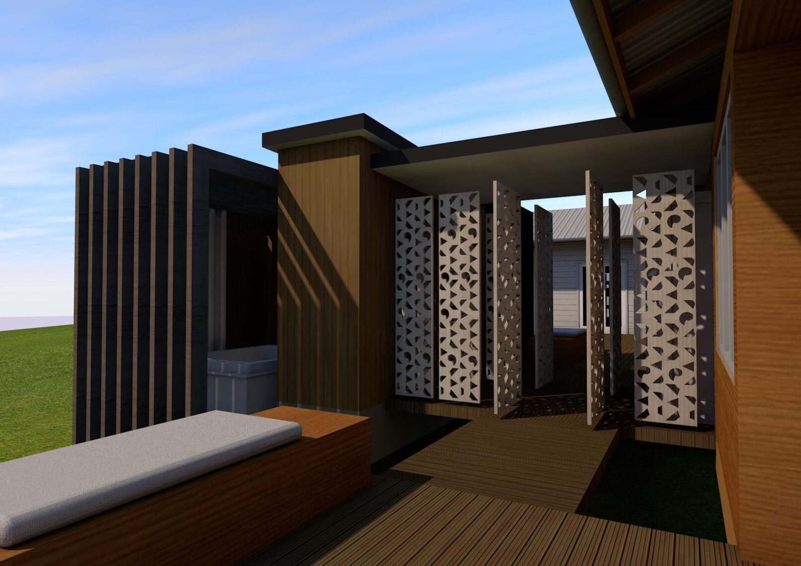 - The original residence on this property is one of the “oldies but a goodie”. The aspirations of the owner directed towards more contemporary living spaces opening up to the expansive gardens extending out to the adjacent roads. Whilst adjustments to the original structure was required to “even out” the spatial accommodation for family members the initial focus was on a studio in the front garden, linking to the main house via the entrance patio.